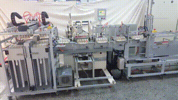 1.機蛋盒ㄇ字型成形貼標、搭配自動供料系統及自動收料系統。