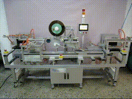 4.粹盤式自動供料機自動供料卡片自動吸取供料至治具上待貼標,可依粹盤矩正式排列貼標貼標完成後