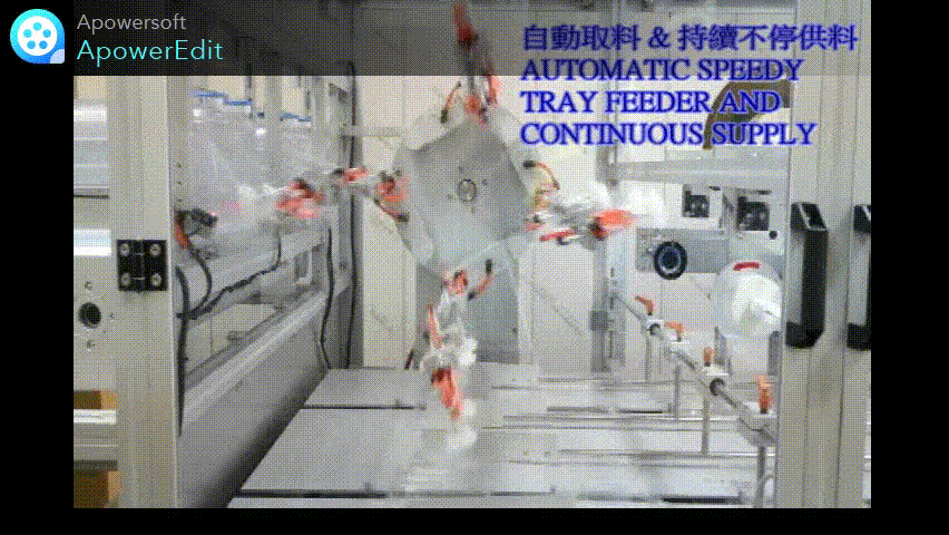 連續式壓空成形水果盒、泡殼連續貼標使用。